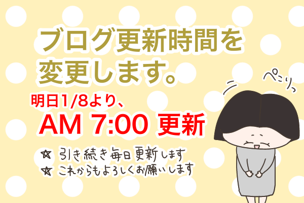 ブログ更新時間変更のお知らせ 2023年01月07日 こんにちは。やーやです。今日は、お知らせの記事になります!今までは21:00更新でしたが、明日から朝の7:00に更新します!引き続き毎日更新しますので、これからもよろしくお願い致します♪ ランキング参加しています。クリックで応援よろしくお願い致します♪にほんブログ村 < 前の記事次の記事 > コメント コメントフォーム 名前 コメント 記事の評価 リセット リセット 顔 星 情報を記憶 コメントを投稿する