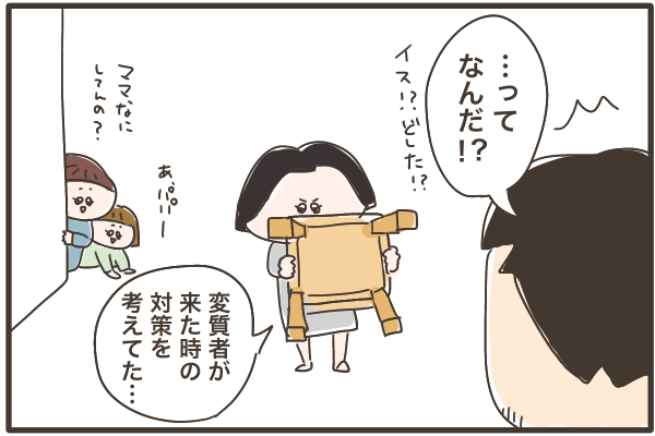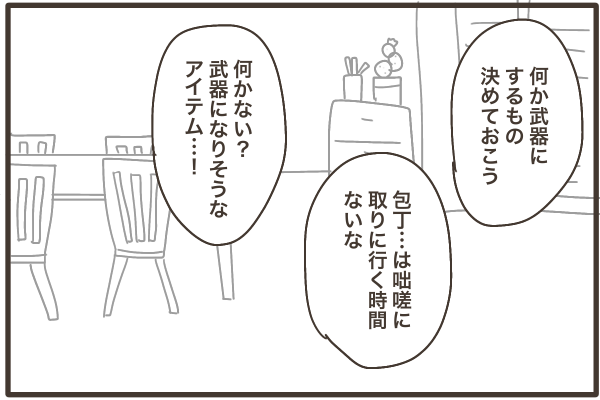 でも子供2人を抱えて逃げてもまず追いつかれるし、家に入ってこられたら戦うしかないですよね。